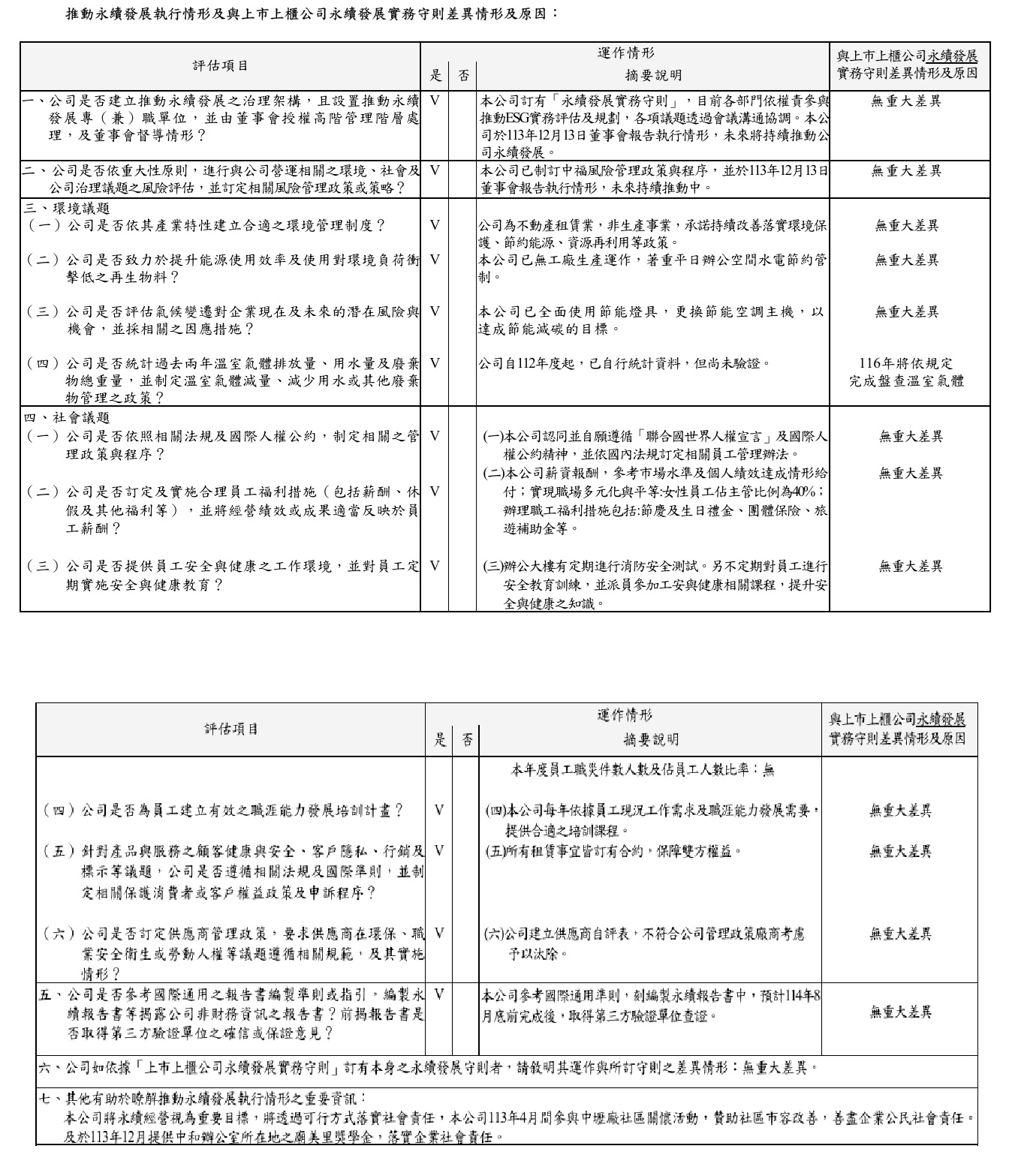 推動永續發展執行情形及與上市上櫃公司永續發展實務守則差異情形及原因: